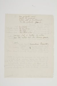 « Comme il n’était plus question d’eau ni de fleurs ni de chanter ni d’écrire sous bois les cœurs étant perdus les cœurs étant touchés »...Ancienne collection Christian Zervos (12-16 novembre 1998, n° 179).
