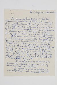 Marie-Noëlle dite Minou DROUET (née en 1947) poétesse prodige.Lettre autographe signée « Minou Drouet », Le Pouliguen 29 décembre [1955], à Albert Willemetz, président de la SACEM ; 1 page et quart in-8.Rare lettre à l’âge de huit ans...