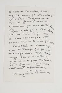Marguerite de Crayencour, dite Marguerite YOURCENAR (1903-1987) romancière, poétesse et mémorialiste.Lettre autographe signée « Marguerite Yourcenar », Petite Plaisance 19 février 1978, [à Daniel Ribet] ; 3 pages in-8.Belle lettre sur le...