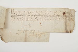 MARIE DE CLÈVES, duchesse d’ORLÉANS (1426-1487) fille d’Adolphe duc de Clèves et de Marie de Bourgogne, elle fut la troisième femme (1440) du duc Charles d’Orléans, le poète (1394-1465), et mère du roi Louis XII (1462).Pièce signée...