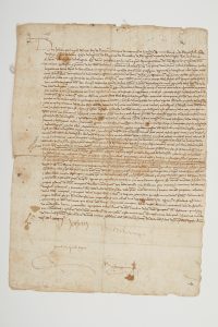 Navarre ; ils sont les arrière-grands-parents d’Henri IV. Pièce signée « Johan » et « Catalina », Pamplona 31 août 1494 ; contresignée par M. de Jaureguicar ; 1 page in-fol. (plis renforcés au dos) ; en espagnol (transcription jointe).Beau et très rare document réunissant les deux signatures des arrière-grands-parents d’Henri IV, souverains du royaume de Navarre. [Catherine de Foix était héritière du royaume de Navarre par son frère François Phébus (1467-1483) ; sa mère, Madeleine de France, assura jusqu’en 1494, date de ce document, la régence du royaume, dont la capitale était alors Pamplona ; en 1512, Ferdinand le Catholique s’emparera de la partie « espagnole » de la Navarre pour la réunir à la Castille et l’Aragon.]« Don Johan », par la grâce de Dieu Roi de Navarre, duc de Nemours, de Gandia, de Montblanch et de Penyafiel, comte de Foix, seigneur de Béarn, comte de Bigorre, de Ribagorça, de Pontiebre, de Peyregorch (Périgord), vicomte de Limoges, Pair de France, et seigneur de la cité de Balaguer, et « Doña Catheline », Reine propriétaire dudit Royaume, duchesse, comtesse et dame desdits duchés, comtés et seigneuries, voulant exalter la puissance, la libéralité et la magnificence des Rois en prodiguant des grâces et honneurs à ceux qui les ont fidèlement servis, veulent ici récompenser les bons services de leur conseiller Don Alonso de Peralta, comte de San Estevan (Saint-Sébastien) et seigneur de Peralta et de Maya, en confirmant le droit et titre qu’il tient comme héritier et successeur du connétable don Pedro de Peralta de la ville et du château d’Andosilla, en vertu d’un échange fait avec le Roi Don Carlos [Charles III de Navarre], et lui font don de tous les droits seigneuriaux, privilèges et revenus divers sur la ville d’Andosilla, pour lui et ses successeurs, sauf la Haute Justice que le Roi et la Reine se réservent…Vente Huit siècles de l’histoire de l’Europe (27 novembre 2008, n° 37).