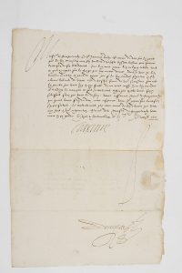CATHERINE DE MEDICIS (1519-1589) Reine de France ; épouse (1533) d’Henri II (1519-1559), mère de François II, Charles IX et Henri III.Lettre signée « Caterine », Fontainebleau 6 août 1571, à Raymond de Fourquevaulx, « chevalier de...