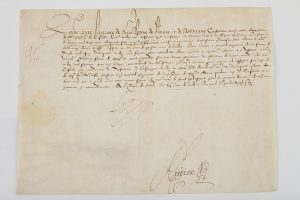 louise de lorraine-vaudémont (1553-1601) Reine de France ; fille de Nicolas de Lorraine comte de Vaudémont et de Marguerite d’Egmont, épouse (1575) d’Henri III (1551-1589).Pièce signée « Loyse », Saint-Maur-des-Fossés 7 juillet 1586 ;...