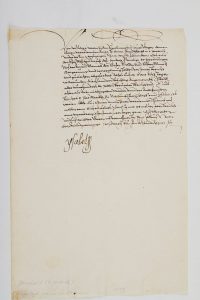 mars 1588 ; demi-page in-fol. ; en allemand.Rare pièce signée par l’ancienne Reine, qui, après la mort de son mari, s’est retirée à Vienne, près du monastère de clarisses qu’elle a fondé.Ancienne collection Molini (16 mars 1875, Gabriel Charavay expert, n° 99).