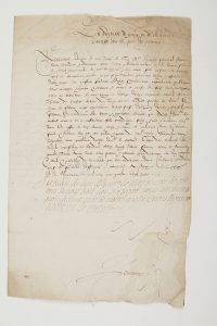 qui lui donna 14 enfants et fut assassiné à Blois ; elle fut un ferme soutien de la Ligue.Pièce signée « Katerine de Cleves » avec 3 lignes autographes, Blois 20 novembre 1588 ; contresignée par son secrétaire des commandements Leseurre ; 1 page in-fol., avec des quittances au verso et au second feuillet (légère mouillure aux coins).Un mois avant l’assassinat de son mari à Blois.« La duchesse de Guise et de Chevreuse, Contesse d’Eu et pair de France » donne ordre au « Receveur ordinaire de notre duché de Guize » Jacques Perceval de payer à la « damoiselle de Molard gouvernante de nostre treschere et bien aimée fille aisnée [Renée de Guise (1585-1626), qui sera abbesse de Saint-Pierre à Reims] la somme à quoy se trouveront monter […] les profficts feodaux et droictz seigneuriaux appartenans et deuz à nostre trescher seigneur et espoux et nous à cause du fief de La Mothe assis au territoire de nostre bourg et village d’Oizy […] En consideration des bons et agreables services que ladicte damelle de Mollard nous a et à nostredicte fille parcydevant faictz, faict et continue chacun jour »… La duchesse ajoute de sa main : « Ne falles de bian deliverer la dite somme de qoit nous li avons fait don par se que nous an navons parsidevant siné de nostre main e feson a prisant Katerine de Cleves ».