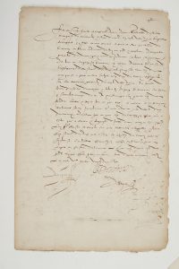 d’une somme de dix mille écus sol sous le nom d’Albin de Carnoy, écuyer ordinaire du Roi. Gabrielle d’Estrées marquise de Monceaulx offre toutes garanties à Carnoy qui prête son nom « pour lui faire plaisir » et sans intérêt. Suit un document signé par Mathurin de Castelnau, 20 avril 1597, à propos de bois sur la terre de Villeneuve-sur-Cher.Vente 30 octobre 2001 (n° 194).