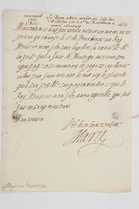 Paris 20 novembre 1627, à « mon cousin le Cardinal de Richelieu » ; 1 page in-4, adresse au verso avec cachets de cire rouge aux armes sur lacs de soie rose.Sur la capture de Walter Montaigu, agent de Buckingham. « Mon cousin je nay pas voulu arester un moment ce porteur qu’envoye le sr de Bourbonne au Roy Monsieur mon filz pour luy dire la nouvelle de la prise quil a faite de Montegu avec tout son equipage et les memoires et papiers. Jay donné ordre pour faire arriver le tout icy le plus tost quil sera possible sur quoy jattendré ce que le Roy Monsieur mon filz aura agreable qui soit fait »…