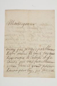 Lettre autographe signée « de Souvré marquise de Sablé », [février 1669], à « Monseigneur » ; 4 pages in‑4. Très rare supplique pour intercéder auprès du Roi. [La marquise de Sablé avait perdu presque toute sa fortune et s’était retirée à Port-Royal de Paris en 1659.]« Monseigneur encore que je naye pas lhoneur d’estre connue de vous j’ay tant d’expérience de la bonté et de lamitié que vous faites l’honeur a mon frere le grand prieur [Jacques de Souvré (1600-1670), commandeur de l’ordre de Malte et grand prieur de France] d’avoir pour luy, que sous cette protection j’ose vous demander une tres humble grace. Si vous scaviez Monseigneur le respect et lestime que jay toujours eu pour vous je me confierois en moy mesme. Mais comme je doute si mes sentimens encore qu’ils ayent esté si publics ayent esté jusqua vous, je prens la liberté de vous demander sous cette mesme protection de vouloir bien me faire lhoneur de representer au Roy quétant creanciere de Monsieur labbé de Maisons [Guillaume de Longueil, abbé de Conches, mort en janvier 1669] de grandes sommes de deniers, je ne puis en estre payée si Sa Majesté na la bonté de me gratifier de la charge de Conseiller au parlement de Paris dont il estoit pourvueu puisquil ne paroist en evidence aucuns autres biens sur lesquels je puisse avoir recours. Si Sa Majesté m’accorde cette faveur il sauvera la ruine d’une personne de qui tous les proches ont eu toute leur vie lhonneur d’estre de sa maison royale. Cest la grace que vous demande Monseigneur Vostre tres humble et tres obeissante servante »...Ancienne collection Alfred Bovet (n° 2041).