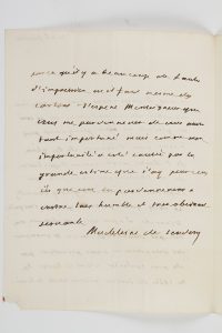 Madeleine de SCUDÉRY (1607-1701) romancière, l’une des plus célèbres Précieuses.Lettre autographe signée « Madeleine de Scudéry », 26 février [1694], à Monseigneur l’évêque d’Avranches, Pierre-Daniel Huet ; 2 pages in-4, adresse...