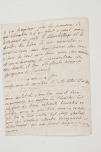 épistolière, elle joua un rôle dans la transmission du texte des lettres de sa grand-mère.Lettre autographe signée « Grignan de Simiane », Aix 14 novembre [1730, à M. Alphantis à Marseille] ; 4 pages in-4.Lettre à son entrepreneur relative aux travaux à effectuer dans son château de Belombre près d’Aix. Elle s’étonne de n’avoir pas reçu de réponse à ses courriers, lui indiquant son intention de « murer la porte de ma chambre et de la blanchir parce quil falloit quelle fut seche pour me recevoir »… Elle le prie de l’excuser d’avoir réagi trop vivement face à son silence, « un mot de reponse de votre part mauroit tranquillisé »… Elle poursuit : « Je ne suis pas si pressée des fenetres den haut, pourveu que le bois soit prest, nous ferons cet ouvrage avec le tems, […] songes aux ornemens de ma chambre ce sera une grande douceur pour moy de la savoir finie mais je vous supplie de mescrire ce qui se passera car cest une chose inquietante que destre dans lignorance profonde de ce que lon a a cueur. Pour le frere Come il ny a qua le laisser faire, mais cependant je voudrois bien quil songeat un peu a ma terrasse sur la riviere, vous pouries luy en glisser quelque chose pour manière de question, je luy avois donné quarante huit francs pour la nourriture, je vous prie mon cher monsieur de luy donner les deux louïs dor pour continuer la dite nourriture »…