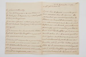 [évêque de Chartres, directeur de Saint-Cyr] ; 7 pages in-8 (lettre dictée à Mlle d’Aumale, les pages 6 et 7 autographes).Belle lettre au lendemain de la bataille de Malplaquet, faisant le récit de ce combat mené dans les Pays-Bas espagnols par les troupes françaises, commandées par le maréchal de Villars, face aux troupes anglo-prussiennes. Bien que l’armée française fît retraite, elle infligea à ses ennemis des pertes considérablement plus importantes que les siennes, et empêcha l’invasion du pays.« Après bien de fausses nouvelles que nous receusmes hier des courriers des particuliers qui venoient aprendre la blessure ou la mort de leur maitre et qui nous assuroient que toute larmée etoit deffaite par une deroute generale, nous avons enfin apris ce matin par le courier de Mr le Mal de Boufflers qu’il y a eu une terrible action le 11 de ce mois, quelle a duré sept ou huit heures, se reprenant continuellement les postes les uns sur les autres, Mr le Mal de Villars y a esté blessé dès le commencement, et que lui Mr le Mal de Boufflers ayant pris le commandement de larmée a esté temoin d’une valeur dans nos troupes qui leur a donné lavantage plusieurs fois, mais qu’enfin il a falu ceder au plus grand nombre, nostre armée sest retirée en tres bon ordre sous le Quesnoy. Pas un soldat ne s’est debandé, ils n’ont point fait de prisonniers, nous avons plus de leurs canons et de leurs drapeaux qu’ils n’en ont des nostres, et ils n’ont pour eux que le champ de bataille qui leur est demeuré, et nostre retraite qu’ils n’ont osé troubler, on peut croire ce que dit Mr le Mal de Boufflers comme sy on lavoit vû soy même ».Elle énumère ensuite les blessures et pertes à déplorer : le maréchal de Villars a été gravement blessé au genou, le duc de Guiche à la jambe, le fils de M. de Dangeau et le marquis de Coëtquen ont chacun perdu une jambe, le comte Palaviccini a été tué, le duc de Saint-Aignan a été blessé à la tête. Elle ne sait rien du comte d’Aubigné. « Il se trouvera bien des morts et des blessez dont Mr le Mal de Boufflers ne pouvoit pas encore avoir de connoissance. On ne sauroit comprendre ce que cestoit que la nouvelle que nous avions receüe de Mr l’Electeur de Bavière qui nous mandoit que les generaux ennemis, et les nostres etoient en conference pour une suspention d’armes, le tems nous eclaircira de tout. Le Marquis de Gondrin est blessé et on ne trouve point Mr de Lambesc petit fils de Mr le Grand. Tous nos blessés sont au Quesnoi. Le Roy d’Angleterre etoit a laction avec la fièvre et a fait des merveilles. Tous nos officiers generaux ont parfaitement bien fait, et Mr d’Artaignan a eu trois chevaux tuez sous luy. Quelques uns disent que le prince Eugène est blessé, cela est incertain ».Elle a appris aussi « que le duc de Noailles a fait quelque chose dheureux en Catalogne »... Mme de Maintenon prend alors la plume, pour annoncer l’envoi d’une lettre sur ce qui s’est passé en Flandres. Son amie Mme de Dangeau est partie cette nuit en poste, sans argent ; M. Voisin lui en a prêté, et elle-même s’interroge : « Quoy que jaye peu dargent, et que jen aurai encore moins si les choses continuent comme elles sont, je nen suis pourtant pas a vingt pistolles près, devrois je en pareil cas prester de largent a une amie jen ai fait scrupule jusques icy ne voulant rien oster aux pauvres, quoy que je comprenne bien lhoneur que de tels procedes me feroient, car tout est tousjours sceu. Mais il est vrai que jay reduit toutes mes depenses et tous mes plaisirs a donner a de pauvres familles et surtout aux nobles. Mes proches en murmurant, faut il changer ma conduitte. Mon cœur est bien serré, le Roy est très resigné. Priez pour moi lun et lautre. Ma santé est très bonne. Je crois que Dieu la soutient pour me faire souffrir. »Noël Charavay, 1919.