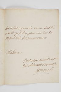 de m’honnorer dune reponce au sujet de la comtesse de Vauzel. Pardonnez moi aussi Madame la liberté que jay prise de vous en demander des nouvelles il suffit que vous lhonnoriez de vos bontez pour lui croire tout le merite possible »…