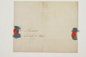 autographes signées « Henriette Anne », la première à la suite d’une lettre autographe signée de la duchesse de Ventadour, [Madrid ?] 9 et 14 octobre 1739, au cardinal de Fleury ; 1 page et demie in-4, et 1 page in-4 (légère mouillure) avec adresse et sceaux de cire rouge aux armes sur lacs de soie bleue.Mariage de sa sœur aînée et jumelle, Louise-Élisabeth, « Madame », qui va épouser en Espagne, le 27 octobre, l’Infant Philippe, futur duc de Parme.9 octobre 1739. Charlotte de La Mothe-Houdancourt, duchesse de VENTADOUR (1654-1744, gouvernante des Enfants de France) écrit la première page : « Nos dames, ce portent, à merveilles, et en verité Madame, n’a pas besoing, de gouvernente. Elle est dune sagesse et d’une douceur charmente avec beaucoup desprit elle engraisse et embelit pour la royne de Maroc elle faict tousjours peur par sa grande vivacité. Celle la aura besoing, destre retenüe car elle est haute dificile à servir, cependant tres aimable. Voila Monsiegneur vous rendre un compte exat de nos princesses, mon temps va bientost finir cela ne sera pas assurement si tost que je le souhaitte, quoyque nostre petite cour ce passe issy noblement et doucement »… Au dos, Henriette prend la plume : « Ne croyez pas ce que Maman Doudou dit il n’i a pas un mot de vrai, mais pour mon amitié elle est bien veritable pour monsieur le Cardinal de Fleuri ».14 octobre 1739. Elle le remercie « de ce que vous faite ma cour au roy, je vous prie de continuer, et lui parlé souvent du respectueux attachement que j’ai pour lui […] La reine de Maroc me charge de vous dire quelle est plus vive que jamais, et quelle vous aime toujours beaucoup ».