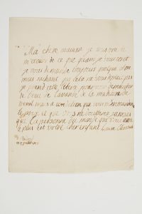 sa mère Marie Leszczynska ; 1 page in-4.Elle demande à sa « chere maman […] de l’eau de lavande de la Madeleine de Trenel mais a condition que vous m’en manderez le prix et que vous ne doutterez jamais que le personne du monde qui vous aime le plus est votre cher enfant »…