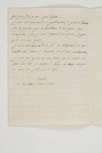 lendemain de la rédaction de son testament, faisant de ses sœurs Adélaïde et Victoire ses exécutrices et légataires universelles. [Elle y avait notamment stipulé de ne pas être autopsiée, selon la coutume, mais qu’on lui ouvre seulement le pied pour constater son décès.]« Je ne sai ma chere Torche [Louis XV surnommait Adélaïde Madame Torchon] si mon testament est bon », mais elle prie de « donner entre vous deux les pentions et les legs aux personnes qui y sont nommées et surtout je vous recommande l’article de mon enterement qu’il soit sans aucunes ceremonies et que je ne sois point ouverte cela me tient bien au cœur. Je vous recommande toutes mes dames mais particulièrement Mes de Montmorin et de Ryantz, vous savés l’amitié que j’avois pour elles, je voudrois bien que vous prissiés Me de Ganges elle vous plaît et vous me feriés grand plaisir, je joins à cette lettre une petite notte de ce que je demande au roy [Louis XVI]. Je vous prie ma chère Torche de de faire tout votre possible pour que le roy l’accorde, parlés en a la reine [Marie-Antoinette] de ma part, et faites bien voir au roy qu’il gagnera encore beaucoup, je ne vous dis rien de moi je sai qu’il faut me taire, je me recommande à vos prieres et à celles de Me de Narbonne »… Après avoir recommandé quelques dernières personnes de son entourage, dont son chevalier d’honneur Talleyrand, et sa femme de chambre Mme Martin, elle réitère son souhait de discrétion : « Je vous prie qu’on ne me fasse pas de service ici. Faites moi dire des messes de temps en temps lorsque vous aurés un petit écus de trop »…