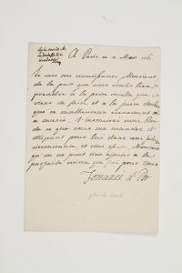 émigra sous la Révolution et mourut à Venise.Lettre autographe signée « Fortunée d’Est », Paris 2 mars 1761 ; 1 page petit in-4.Sur la mort de sa mère, la princesse de Modène.« Je suis tres reconoissante, Monsieur, de la part que vous voulez bien prendre a la perte cruelle que je viens de faire et a la juste douleur que ce malheureux evenement m’a causée. J’instruirai mon Pere de ce que vous me mandez d’obligeant pour lui dans cette facheuse circonstance »…Lefebvre, 1868.