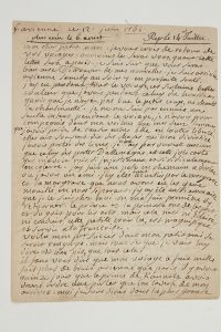 finances, à Paris ; 6 pages in-4, adresse avec contreseing ms de Bouret.Très longue et belle lettre sur son séjour à Vienne lors de son voyage vers la Pologne. Répondant à l’invitation du Roi de Pologne Stanislas Poniatowski, Mme Geoffrin (alors âgée de 68 ans) a quitté Paris quelques semaines plus tôt. Elle raconte à son « cher petit ami » sa halte à Vienne, où elle est arrivée il y a quelques jours, en parfaite santé : « J’ay eu pendant tout le voiage, ces sertaine belles couleurs que j’avois pendant celuy du Housset, quoi que je n’aye pas bue le petit coup, ni chanté la chansonnette »… Elle s’est arrêtée à Dorlac [Durlach] où elle a été reçue par le Margrave et la Margravine : « nous avons eu les yeux mouillé en nous séparant. J’y ay ai été aussi a mon aise que je le suis chez moi. On m’a fait promêtre d’y retourner. Le prince et la princesse ont de l’esprit, et du goût pour les arts. Mais cela n’est ni eclairé, ni conduit, cette petit cour la est magnifique et servie a la françoise ». Son voyage fait plus de bruit à Vienne qu’à Paris : « Il y avoit quinze jours que le prince de Kaunitz avoit donné ordre aux postes que l’on l’averti de mon arriver ». Elle pensait séjourner trois ou quatre jours dans son auberge, mais il en a été tout autrement. Dès son arrivée, sa chambre a été remplie de valets et de pages, porteurs de compliments et d’invitations, puis « les embassadeurs de toutes les cours, et tous les seigneurs que j’ay reçu chez moi depuis bien des années, et dont je ne souvenois presque plus, sont venu me voir, avec des expressions de reconoissance, et de sentiments, dont j’ay esté confondue ». La princesse Kinski ne la quitte plus. Le prince Galitzine est venu le soir même de son arrivée : « Il ma donné tout ce qui me manquoit dans mon auberge il m’anvoye tous les matins du café à la crème. Son carosse est le mien, enfin je suis comblée et accablée de ces attentions » ; c’est un homme adorable, qui ne la quitte pas. Elle va tous les jours chez le prince Kaunitz, « le per ministre de tous les pers ministre de l’Europe. Il a un pouvoir absolu et une représentation d’une dignité, et d’une magnificence ynimaginable ». Elle va dîner dans son jardin à deux pas de Vienne, où on fait une très bonne chère ; et elle passe ses soirées dans son appartement au palais impérial, « superbe, bien eclairé et remplie de toute la cour et la ville, et on y est comme si on etoit dans son boudoir » ; Kaunitz s’assied à côté d’elle et lui parle « avec beaucoup d’intimité. Et là, on me fait des présentations sans fin, en me parlant de ma grande réputation, et de mon grand mérite. Vous autre qui vous moqué de moi toute la journée, vous seriez confondus si vous voiez le cas que l’on fait de moi ici »… Elle raconte encore sa première rencontre sur la promenade publique avec l’Empereur, qui vint lui parler à la portière de son carosse : « Il me dit que le roi de Pologne etoit bien heureux d’avoir une amie comme moi. Je fus confondue et n’ay jamais etée si bête ». Le lendemain, elle a été reçue par l’Impératrice Marie-Thérèse à Schönbrunn : « Limperatrice ma parlé avec une bonté, et une grace inexprimable elle m’a nommée toutes les archiduchesses l’une apres l’autre, et les jeunes archiducs. C’est la plus belle chose, que cette famille qu’il soit possible d’imaginer. Il y a la fille de l’empeureur arriere petite fille du roi de France, elle a deux [douze] ans. Elle est belle comme un ange. L’imperatrice ma recommendée décrire en France que je l’avois vue cette petite, et que je la trouvois belle » [il s’agit de Marie-Antoinette]… Elle croit rêver, et a confié la veille à Kaunitz : « Mon prince la reine de Trébisonde ne pouvoit pas être reçue mieux que moi. Il me répondit personne ne peut être vu ici avec plus destime, et de considération que vous. Vous etes respectée plus que vous ne pouvez jamais vous l’imaginer»… Le Roi de Pologne a tout mis en œuvre pour « rendre mon voiage tres commode », et lui a envoyé un gentilhomme au titre de capitaine, parlant toutes les langues, chargé de la conduire chez lui, avec meubles, vaisselle d’argent, cuisinier… Elle charge son petit ami de compliments pour tous ses proches. Elle lui écrira de Varsovie. Elle ajoute pour finir que « l’imperatrice ma trouvée le plus beau teint du monde ». Elle quite Vienne le lendemain.Publication par Edmond et Jules de Goncourt, Portraits intimes du XVIIIe siècle (Dentu, 1857-1858, t. I, p. 166-175).Ancienne collection du marquis de Biencourt.