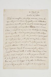 marquis de Condorcet à Ribemont par Saint-Quentin ; 2 pages et demie in-4, adresse.Belle lettre à Condorcet, dictée dans son bain à d’Alembert.« Toutes vos commissions sont faites, Monsieur, je viens d’envoyer chez Mr de Clermont les paquets que Mr d’Alembert avoit à vous »... Elle compte voir bientôt l’archevêque de Toulouse [Étienne-Charles de Loménie de Brienne], et M. d’Ussé, qui est à Paris, très occupé par ses procès, auxquels elle fera ses compliments. Elle aurait aimé aller à Ablois en même temps que Condorcet, mais elle doit se rendre au Bouloi en septembre, et « Mr le directeur [d’Alembert] vient avec moi, pour me diriger à la place de l’academie. Si vous n’êtes pas au fait de l’affaire de la compagnie des Indes [dont le privilège venait d’être suspendu le 13 août], faites vous donner les memoires à Ablois. Il y en aura deux de l’abbé Morellet et un de Mr Neckre [Necker] ; lisez aussi [...] dans L’Esprit de Marivaux à la page 97 la lettre d’un Pere à son fils ingrat. Lisez aussi la Fausse Délicatesse, comedie du nouveau théâtre anglois traduit par Madame Riccoboni ». Elle évoque l’état de Mme de Brienne, à qui on a déclaré « qu’elle n’étoit plus grosse », ce qui l’afflige. Elle termine : « Adieu, Monsieur, il est très incommode de dicter à un homme aussi admirable que mon secretaire, qui fait d’aussi beaux memoires à l’académie, & qui est aussi maussade à la maison. Tout maussade qu’il est, il vous embrasse de tout son cœur & vous attend à la St Martin »... Elle demande encore des nouvelles de Mme de Saint-Chamans…Librairie de l’Abbaye, 1959.