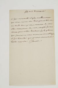 in-8.Émouvante lettre à la fin de sa vie.« Je suis mourante et plus malheureuse que vous, car on m’a tout pris et l’on ne me rends rien ; je vous remercie de vous etre resouvenu de moi, comptés sur mes vœux pour votre bonheur, sur le plaisir que j’aurais a vous revoir, a vous obliger ; et sur l’amitié que je vous conserverai toute ma vie »...On joint la copie ancienne d’une lettre de Mlle Clairon à M. Dupoirier à Sully.