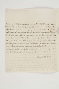 grande piété, elle a été déclarée en 1808 Vénérable de l’Église catholique.Lettre autographe signée « Marie Clotilde », Moncallier [Moncalieri] 16 juillet 1779, à la marquise d’Usson, au château de Reverseaux ; 2 pages in-4, adresse avec cachet de cire rouge aux armes.Elle la remercie de l’intérêt amical pris à son rétablissement de la rougeole : « Je n’ai pas eu d’occasion, d’executer l’ordre que vous m’aviez donné, de me bien soigner pour les suittes de cette maladie car elle ne m’en a laissé aucune, […] je me porte infiniment mieux depuis cette maladie, que je ne me portois quelques temps auparavant ». Elle est fâchée de savoir la marquise « toujours si incommodée, je n’ai pas été peu éttonée de vous scavoir le 17 de Juin au coin de votre feu, nous avons eu aussi alors des journées froides, mais pas assez pour allumer du feu. La chaleur jusqu’aprésent n’est pas des plus violentes, et nous avons souvent, ou des orages, ou du vent, qui rafraichit beaucoup le temps. Je vous prie de bien remercier, ma petite Clotilde, de la sensibilité qu’elle a marqué au sujet de ma maladie, de l’embrasser, et de l’assurer que je suis enchantée de son bon petit cœur. Il me paroît que de vos deux jumeaux Philippe est le plus fort, cela va tres bien, car la force convient mieux a un homme et Elisabeth aura pour partage, les agréments de corps et d’esprit »…