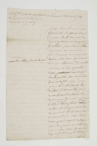 Charles-Geneviève de Beaumont, chevalier d’ÉON (1728-1810) officier de Dragons, agent secret et aventurier, travesti en femme.Lettre autographe (minute), Tonnerre 23 août 1781, au comte d’Osseville, chef d’escadron du Régiment de Languedoc...