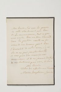 signée « Marie Josephine Louise », [fin septembre 1785 ?], à Louis-Jean-Marie de Bourbon duc de Penthièvre ; 1 page grand in-8 (deuil), adresse avec cachet de cire noire à ses armes, portant le contreseing ms de l’Intendant général des Postes Rigoley d’Ogny et l’indication « Très Pressée. Chargée » (portrait gravé joint).Réponse aux condoléances de Penthièvre, lors du décès de sa mère la Reine de Sardaigne, Marie-Antoinette d’Espagne (1729-1785), morte le 19 septembre 1785.« Mon Cousin, J’ai reçu les preuves de votre attachement, avec bien de la reconnoissance, tout ce que vous voulez bien me dire d’honnête dans la position cruelle ou je viens de me trouver peint bien l’honneteté de votre ame, j’y ai eté on ne peut pas plus sensible »…