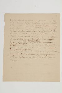 autographe ; 1 page et demie in-4 avec ratures et corrections. Brouillon pour ses Mémoires sur Marie-Antoinette.« Peut-être Marie-Antoinette jouissoit elle avec trop d’épanchement du bonheur d’avoir rendu le jeune monarque à des formes moins brusques et même à des usages polis. Un jour le Roi entra dans la chambre de la Reine où se trouvoient des Dames du Palais et quelques grands officiers. Il étoit habillé avec soin et fort bien peigné il se présenta avec noblesse et salua de bonne grace. La Reine en fut charmée. Elle jouissoit de son ouvrage et dit comme Roxelane dans les 3 Sultannes en parlant de Soliman, voyez mesdames pour un enfant mal élevé, comme le Roi est devenu poli et gracieux »... Puis elle note ses souvenirs sur les paroles de la Reine en public : « La Reine répondoit aux harangues et s’exprimoit d’une maniere noble et précise. Depuis longtemps les Princesses de la Maison de Bourbon ne répondoient plus dans ces cérémonies qu’en remuant les levres et feignant de parler assés bas pour n’être pas entendues »... Mais lorsque la Reine connaissait le sens des discours qui lui seraient adressés, « Elle écrivoit le matin ses réponses et sans les apprendre avec exactitude Elle fixoit d’une manière plus précise ce qu’Elle devoit dire »...Librairie Les Autographes, 2002.