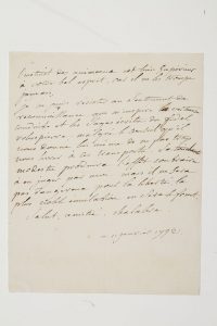 Jeanne-Marguerite de Rigny, Madame Roger de Chalabre (1752 ?-1795 ?) châtelaine de Groslay près de Montmorency, amie et admiratrice passionnée de Robespierre. Lettre autographe signée « Chalabre », 11 janvier 1792, [à Maximilien de...