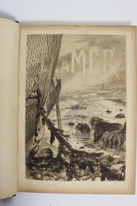 Maizeroy, René - La Mer - Paris ; Georges Petit, [1895] - 1 volume In-Folio -24 eaux fortes et 6 héliogravures hors texte de Louise Abbéma, Georges Clairin et Bracquemont - Reliure de l'époque demi chagrin marine - Dos lisse joliment orné et...