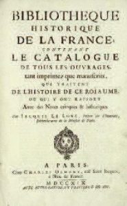 Lelong (Jacques). Bibliothèque historique de la France ; contenant le catalogue de tous les ouvrages, tant imprimez que manuscrits, qui traitent de l'histoire de ce roïaume ou qui yont rapport. Avec des notes critiques & historiques. Paris, Charles