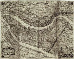 marbrée, double filet doré, petit fer aux angles, dos orné, pièces de titre fauve (Reliure pastiche du xixe siècle). Brunet, III, 1623. Édition originale d’un ouvrage fort recherché, qui devait à l’origine comporter trois volumes et dont seul le premier fut publié. Imprimé par Jean Bruyset, il contient l’histoire de la ville de Lyon depuis les Gaulois jusqu’au règne de Charles VII vers 1400. On y trouve à la suite, à pagination séparée, les Preuves de l’histoire consulaire de la ville de Lyon et les Tractatus et buliis et induciis. L’illustration comprend 5 planches hors texte, un tableau dépliant, UN TRÈS BEAU ET GRAND PLAN DE LA VILLE DE LYON par Tardieu, dépliant, et plusieurs figures gravées dans le texte. Petit cachet violet répété. Restauration dans la marge du feuillet de faux-titre et à l’angle d’un feuillet de l’épître, la planche de l’horloge est doublée, petites réparations au plan de la ville. Rousseurs et taches, des cahiers uniformément brunis. Charnière supérieure et un mors fendus.