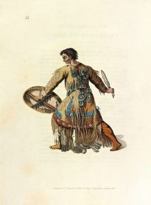 Premier tirage de cette belle collection représentant toutes les nationalités de l'empire russe, y compris les Finlandais, Lapons, Esthoniens, Tchéremhisiens, Votiakiens, Samoyèdes, Kalmouks, Kirghizes, Tatares, etc. Elle contient 73 planches en couleurs gravées au pointillé par J. Dadley montrant chacune un personnage masculin ou féminin, debout ou parfois à cheval, dans son costume caractéristique et généralement somptueux. Un texte bilingue français-anglais apporte des commentaires et anecdotes sur les vêtements et personnages illustrés. Bel exemplaire en grand papier avec les planches en brillant coloris. Épidermures aux coiffes et aux coins. Légères rousseurs ne touchant que les serpentes. Colas, n°702 – Abbey, 244 – Lipperheide, n°1341 – Vinet, n°2322.