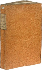 DIDEROT (Denis). Le Neveu de Rameau, dialogue. Ouvrage posthume et inédit. Paris, Delaunay, 1821. In-8, broché sous couverture de papier à la colle orangé, pièce de titre imprimée au dos, non rogné, étui et chemise modernes.