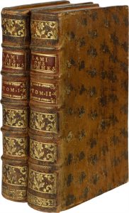 Seconde édition, la meilleure et la plus complète du grand ouvrage du marquis de Mirabeau. Après avoir fait paraître les trois premières parties de l'ouvrage en 1756, Mirabeau fit la connaissance du physiocrate Quesnay et se rangea à la doctrine physiocratique, défendant que plus on fait rapporter à la terre et plus on la peuple et que c'est dans la population que se trouve la vraie richesse d'une nation. L'édition est ornée d'un beau frontispice gravé par Fessard d'après Blakey. Les trois premières parties (formant ici le premier volume) contiennent L'Ami des hommes proprement dit ; la cinquième partie est datée de 1760 et la sixième, sans date, contient l'explication par Mirabeau du Tableau économique de Quesnay, qui n'avait connu jusqu'alors que de très petits tirages. Excellent exemplaire, élégamment relié à l'époque et bien frais, de cet ouvrage rare complet. Petits frottements sans gravité à la reliure. Higgs, n°1631 – Kress, n°5735 – Einaudi, n°3941 – Goldsmith, n°9317 – Say, II, 294.