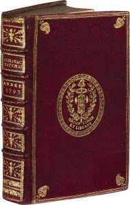 ALMANACH NATIONAL DE FRANCE. 1 Paris, Testu, 1793. In-8, maroquin rouge, triple filet doré, bonnet phrygien sur un fer de lance aux angles, médaillon ovale au centre renfermant la devise « Union Force et Liberté » surmontée d'une couronne de...