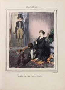 Suite complète de 79 lithographies par Gavarni. Exemplaire avec les planches coloriées et gommées au pinceau, auquel on a ajouté à la fin un catalogue de 4 pp. de l'éditeur Aubert.