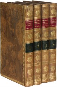 THILORIER (Adrien-Jean-Pierre). Système universel ou de l’univers et de ses phénomènes considérés comme les effets d’une cause unique. Paris, chez les Libraires et chez l’auteur, 1815. 4 volumes in-8, basane racinée, frise dorée en...
