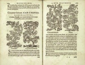 Baudrier, X, 130. — Brun, 171. — Mortimer, French books, n°176. Seconde édition publiée par Arnoullet, après celle qu’il donna en 1550, de cette traduction de Jean Ruel. Elle est la première à contenir le supplément de vignettes du physicien et botaniste Jacques Dalechamps. Charmante illustration gravée sur bois contenant de nombreuses figures de plantes, d’animaux, d’oiseaux, etc., dans le texte, déjà employées par Arnoullet dans son édition de 1550, et 30 bois de Jacques Dalechamps, occupant le cahier Ee. Ex-libris manuscrits de l’époque sur le titre et sur un contreplat. Mouillures à l’angle inférieur et rousseurs. Dos refait.