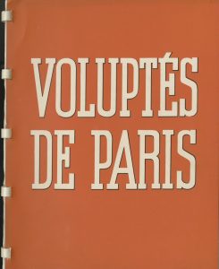 Brassaï (Gyula Halasz, dit) (1899-1984) Voluptés de Paris. Paris-Publications, 1934. In-4 (27 x 21 cm). Édition originale. 38 photographies reproduites en noir et blanc. Reliure volute à cinq anneaux, tous d'origine. Couverture orange avec titre...