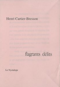 Cartier-Bresson, Henri (1908-2004) 2 plaquettes, signées. Flagrants délits. Le Nyctalope, Amiens, 1998. In-12 (21 x 14,5 cm). Édition originale, signée. 8 pp. Édité le 10 octobre1998 à 33 exemplaires hc dont quelques-uns signés au hasard....