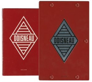 Doisneau - sept. 1992". Catalogue de l'exposition à la Villette de novembre 1988 à janvier 1989. Couverture souple illustrée sous emboîtage en fer avec rivets reprenant le logo de la marque (dos du livre avec plis).