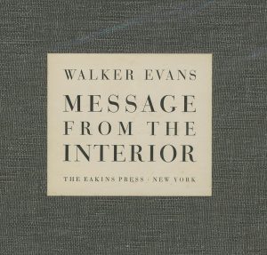 Evans, Walker (1903-1975) Message from the Interior. The Eakins Press, New York, 1966. In-folio (36,5 x 36 cm). Édition originale. 12 photographies reproduites en héliogravure avec papiers cristal de protection. Cartonnage d'éditeur avec...