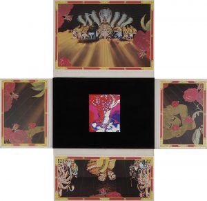 (rousseurs sur les pages de garde). Emboîtage à 4 volets illustré (rousseurs). Boîte en carton d'expédition (usures et accidents).