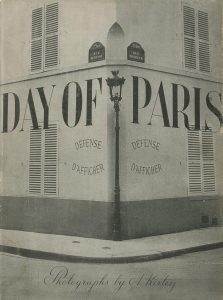 Kertész, André (1894-1985) Day of Paris. Photographs by A.Kertesz. J.J.Augustin Publisher, New York, 1945. In-8 (24,5 x 18 cm). Édition originale, dédicacée et signée par le photographe. 148 pp. Design de la jaquette par Alexis Brodovitch....