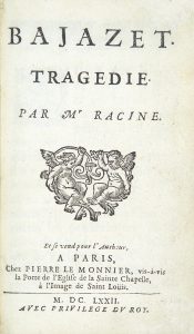 Racine (Jean). Bajazet. Et se vend pour l'Autheur, à Paris, Pierre Le Monnier, 1672. In-12, maroquin rouge janséniste, dentelle intérieure, tranches dorées (Reliure vers 1880). Édition originale. Bajazet fut représentée le 5 janvier 1672 à...