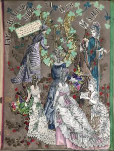 petits morceaux de carton dentelés, le tout disposé autour d'une chromolithographie collée au centre de chaque plat, chemise et étui modernes (Reliure de l'époque). TRÈS SPECTACULAIRE ET SÉDUISANT ALBUM DE COLLAGES ANGLAIS, anonyme, composé de 10 planches et de 2 compositions sur les contreplats réalisées au moyen de techniques mixtes : fleurs et feuillages séchés, découpages, collages, emploi de gravures, coquillages, coton de couleurs, etc. Chaque collage est accompagné d'un titre dont les lettres sont découpées dans du papier de différentes couleurs. PIÈCE UNIQUE, DONT LES COMPOSITIONS FONT ÉVIDEMMENT PENSER AUX COLLAGES SURRÉALISTES, NOTAMMENT CEUX DE JACQUES PRÉVERT. Ensemble fragile, avec petits manques.