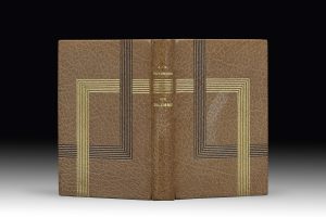 avec rappel de filets dorés, filet intérieur, tête dorée, non rogné, couverture et dos (Reliure moderne). Édition originale. Charmante reliure à décor géométrique, non signée. Petite trace de cire blanche sur le premier plat.