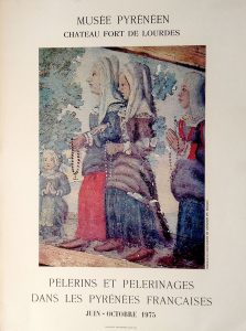 Musée Pyrénéen, Château-Fort de Lourdes - Imprimerie Marrimpouey Jeune, Pau, 1975 - Affiche sur papier fort au format 40 x 54 cm., imprimée en noir, illustrée d’une photographie en couleurs d’une fresque du Sanctuaire de Garaison (Photo Ph. Masson). Affiche pour la seizième exposition du Musée Pyrénéen du Château-fort de Lourdes.