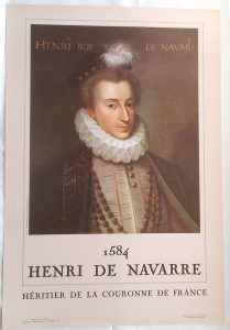 - Affiche imprimée sur papier saumon au format 44 x 63,5 cm., imprimée en brun, illustrée de la photographie en couleurs d’un beau portrait d’Henri IV jeune.