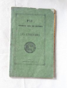BELLEMARE (Alfred Gustave) Pau, considéré dans ses rapports avec les étrangers. Questions d'intérêt général - Pau, E. Vignancour, 1854 - In-8° : t., 80 pp., [1] f.bl. -broché, couv. verte impr. et ill.